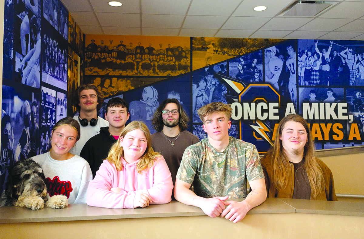 As you enter the double doors, you share a look with the smiling, young faces wrapped on the wall, boasting a photograph from nearly every yearbook of over a century of Carmichaels history. On the left is a trendy storefront decked out in blue and gold Mikes’ pride. As you sink into the welcoming environment, you notice students working on homework while riding stationary study bikes or chatting with friends around a table near the bookcases.