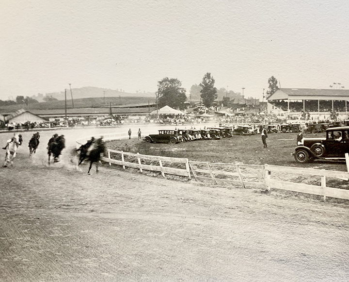 When countywide agricultural associations were organized in 1886, the old frontier tradition of celebrating the harvest with a bragging rights party and some horseracing was already firmly rooted, from Carmichaels to Jefferson, Jacktown, Mt. Morris and Waynesburg. Part of the acreage where Waynesburg’s first official fairground once stood is the football field for Waynesburg University on the south side of town. The first “Agricultural Exhibition” was a late September affair that offered a midway lit by new fangled gaslights, new farm machinery to browse, ribbons for prize livestock and plenty of “handicraft of the ladies.” But its half-mile track and hefty purses were the big draw that attracted thousands, including gamblers, crooked gamesters and a good bit of drunken revelry. Throughout the “gay 90s” fair attendance was high but public disapproval of the rowdy nature of the midway and the racetrack would eventually lead to a genteel coup. When a new board was formed in 1902 it immediately voted to sell the land for subdivision and that was that. There would be no fairs in Waynesburg until the fair association reorganized in 1910, bought the 60-acre R. A. Sayers farm near Morrisville and got to work building the fairgrounds we have today. First order of business: build a half-mile racetrack with an underpass to the center of the track for parking. The first races were held on Oct 5-6 with $6000 in purse money for races that were cut short by rain. Now the race was on to build a real fairground. By December, a 2500 seat grandstand was finished and the Fourth of July 1911 was a day at the races that included a three-mile motorcycle heat between a seven horsepower twin cylinder Reading Standard and a four and a half horsepower single cylinder Arrow. The Reading Standard won and the era of the iron horse was here to stay.