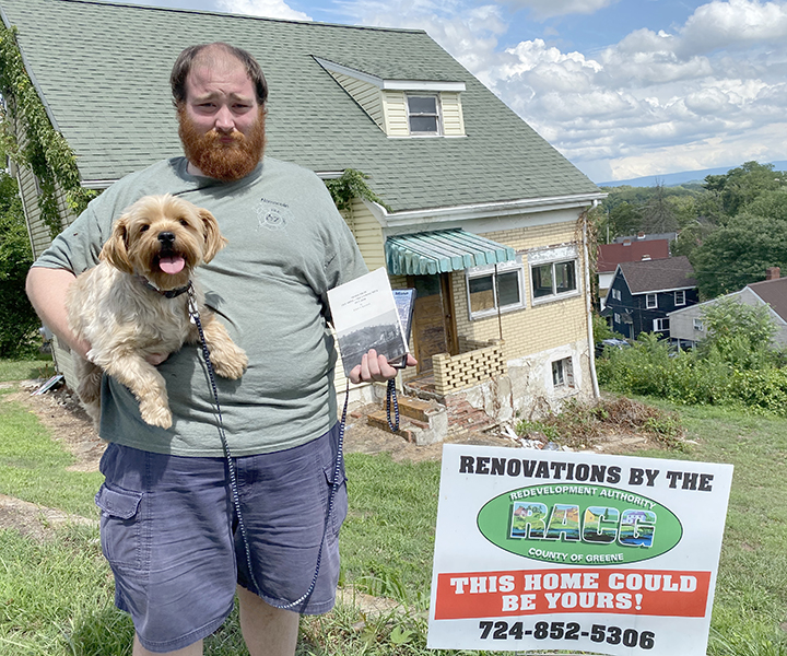 Fire department member Ed Helman takes a break from festival duty to show me some of the houses that the Redevelopment Authority of Greene County is in the process of renovating. RAGC purchased thirteen properties in June and plans to remove several blighted structures and rehabilitate the rest.