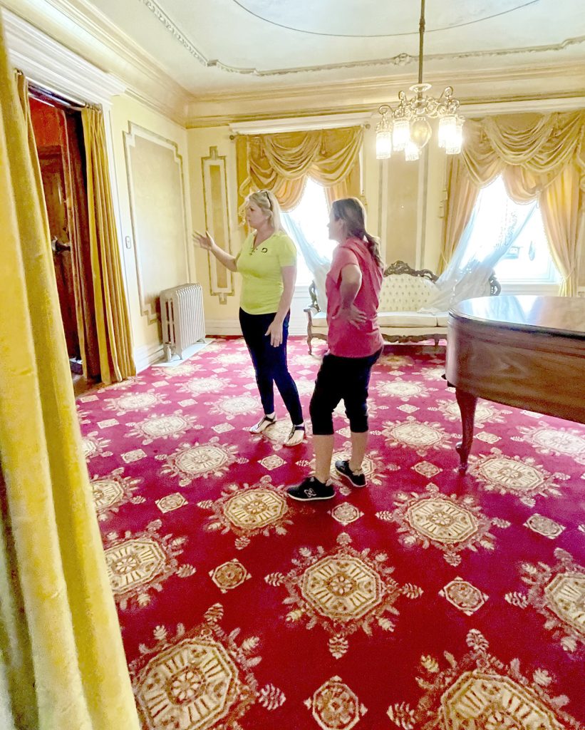 New owner Pam Marisa is taking me on a tour of the house, grounds and carriage house that she and husband Kent purchased in May and are busy refurbishing. The restorations done by Bob and Pat Gross are period piece perfect; what’s left to do is mostly clean up and install additional niceties like a wine cellar in one of the two basements and redecorate the still almost empty rooms on all three floors with furniture and fabrics to match the mood. The Denny House is on its way to becoming a Victorian venue once more, ready for people to book bridal and baby showers, or special events or a weekend getaway to scenic, historic Greene County.