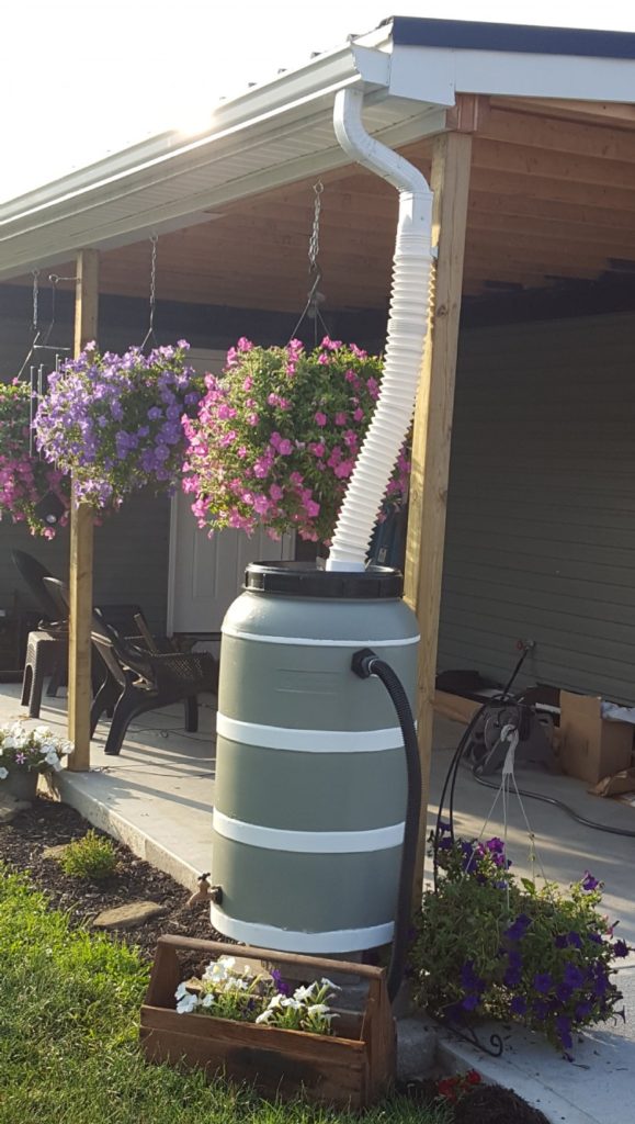Once you’ve figured out the answers to these questions, you can begin the installation. You’ll need to level the area where your barrel will be placed, and then place a sturdy, stable base made from blocks, stones, wood, cement, or bricks. Elevate the barrel enough to provide room to fill watering cans or buckets and attach a hose. Once it is in place, you’ll need to connect a downspout, so that rain from your roof can travel into the barrel. If you don’t have gutters or an available downspout, a chain can be hung that allows water to travel its length and flow into the barrel.