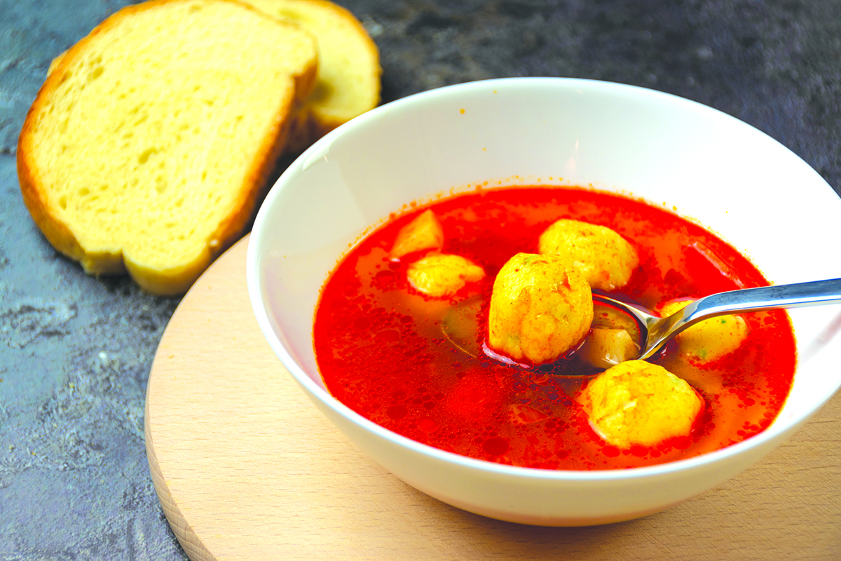 Mix all ingredients above together. Dough will be very sticky. Make very, very small dumplings (about the size of chickpea or so) and drop into the soup one at a time.