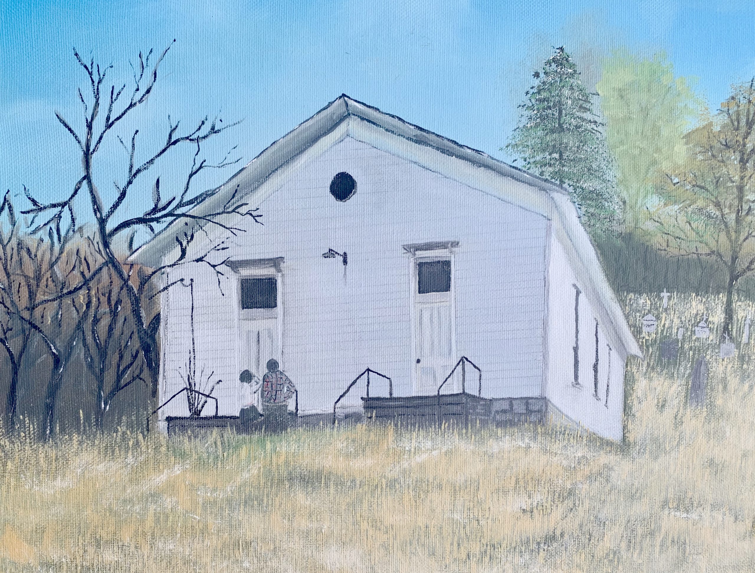 William L. Knight painting is a photographic capture of the church that is no more. Look closely and you’ll see he and Vivian standing beside a doorway, getting ready to say goodbye.