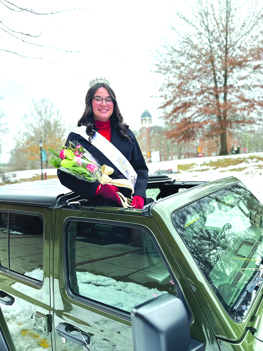 Miss Merry Christmas Olivia Mata proudly represented Carmichaels in the Waynesburg Christmas Parade earlier in the day, then headed back to her hometown to make an appearance at Light Up Night.